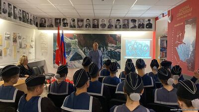 3 октября 2025 года заместитель председателя РООИВ «Союз «Чернобыль» Севастополя» Третьяк Е.В. и участник ликвидации аварии на ЧАЭС, кавалер ордена Красного Знамени Насонов А.Т. провели урок мужества и патриотизма на Посту 1 города - героя Севастополя с учащимися гимназии 24 по приглашению педагога-организатора Гагиной Л.А.