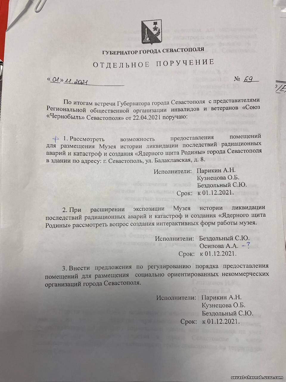 Будем надеяться, что в канун 40-ой годовщины аварии на ЧАЭС этот вопрос сдвинется с мертвой точки, так как Распоряжение Губернатора города Севастополя по этому вопросу было еще в 2021 году…