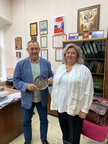 С удовольствием вручила Вячеслав Леонидовичу панно, на котором множество объектов исторического Севастополя…